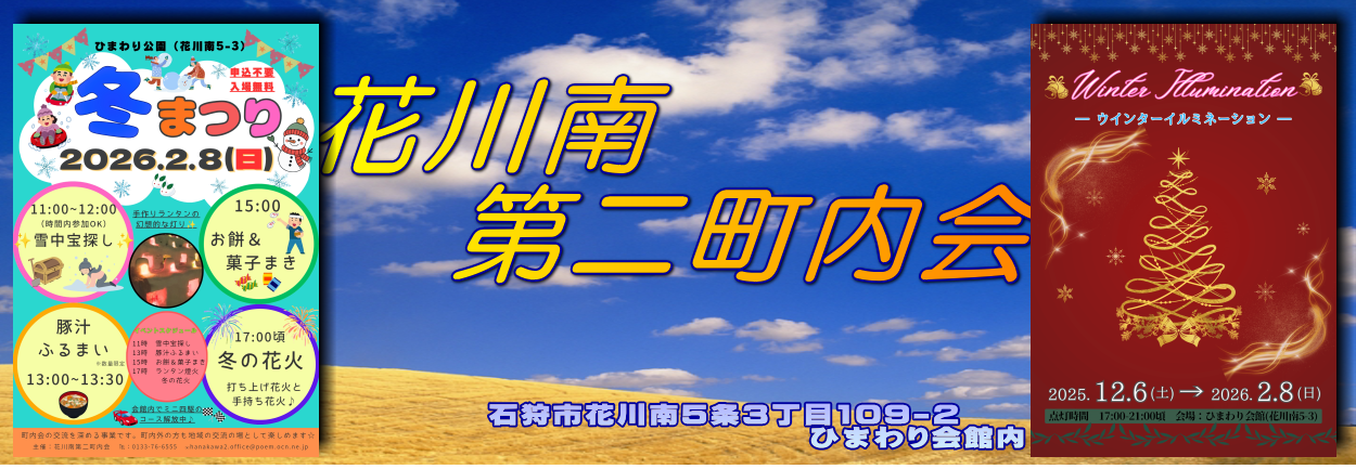 花川南第二町内会は、石狩の南に位置し花川南5条3~5丁目と南6条3~5丁目に在住する市民らで構成されています。